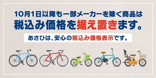 サイクルベースあさひは消費税増税後も安心のサイクルライフをサポートします。