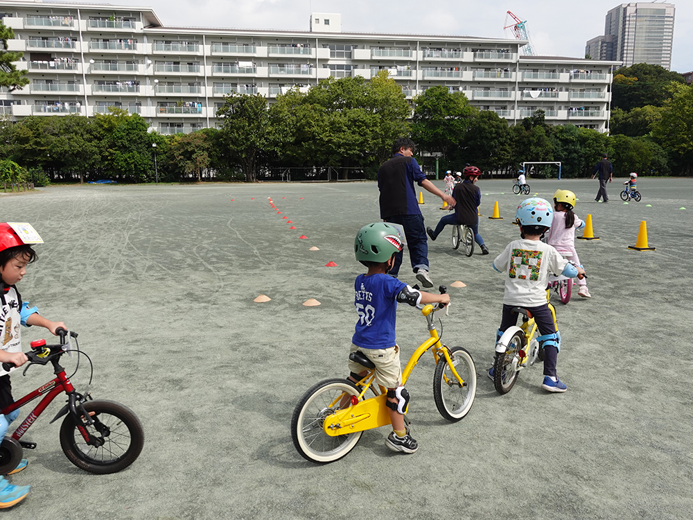 目黒では、広いコースで練習できたので、たくさんの子ども達が自転車に乗れるようになりました。