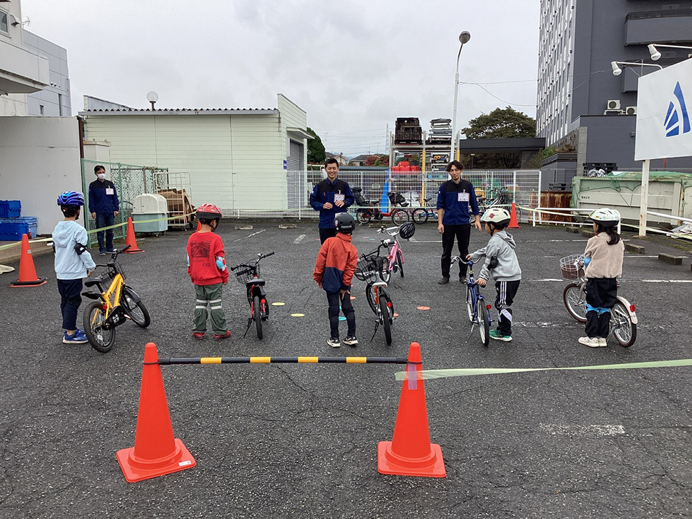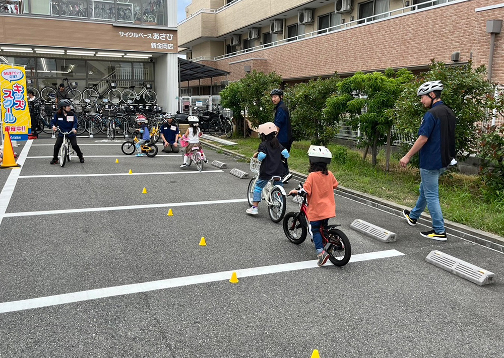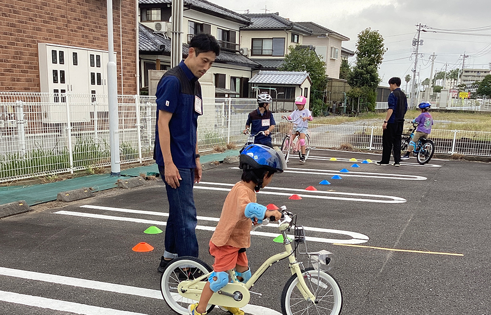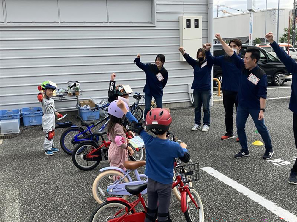 台風の影響でお天気が心配でしたが、当日は良い天気の中8名のお子様と楽しく自転車練習しました。