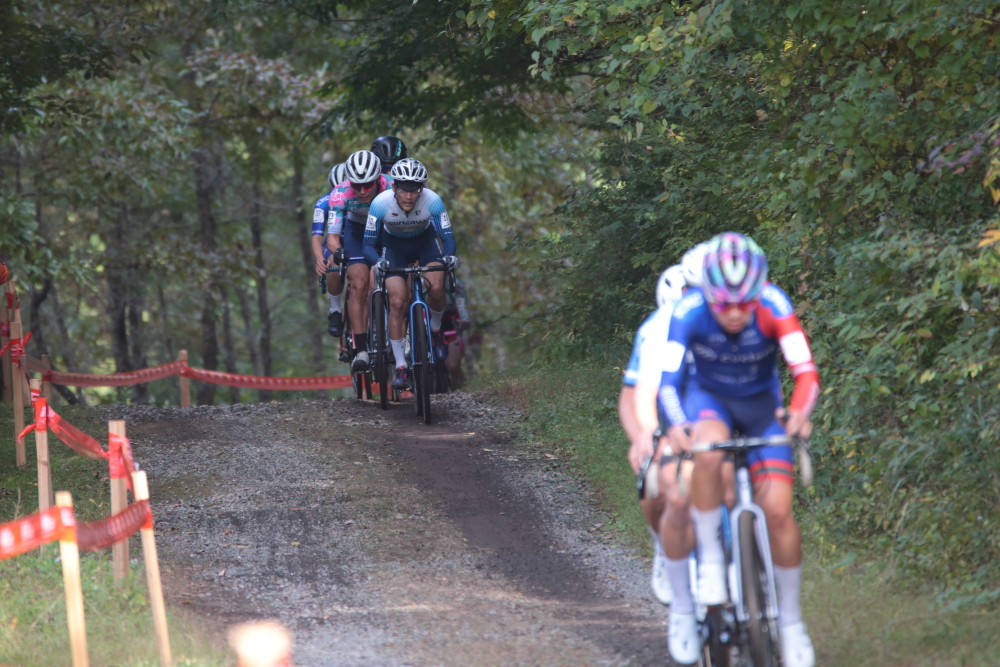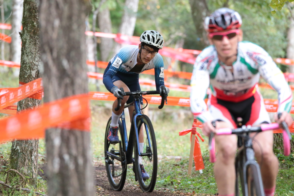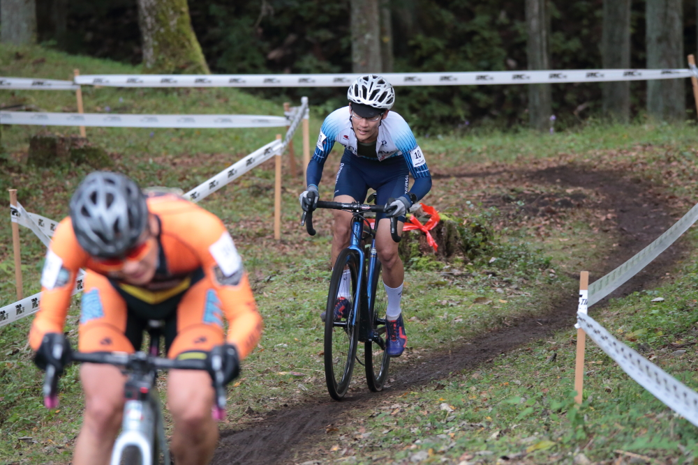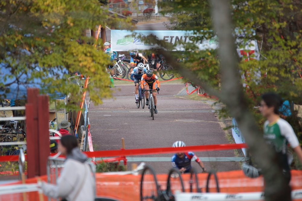 ここで川村選手が猛プッシュし、もはやついていくのが精一杯でしたが、その動きに助けられて、さらに前を走る高木選手【AX cyclocross team】に追いつきました。