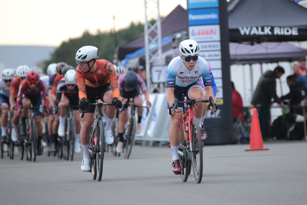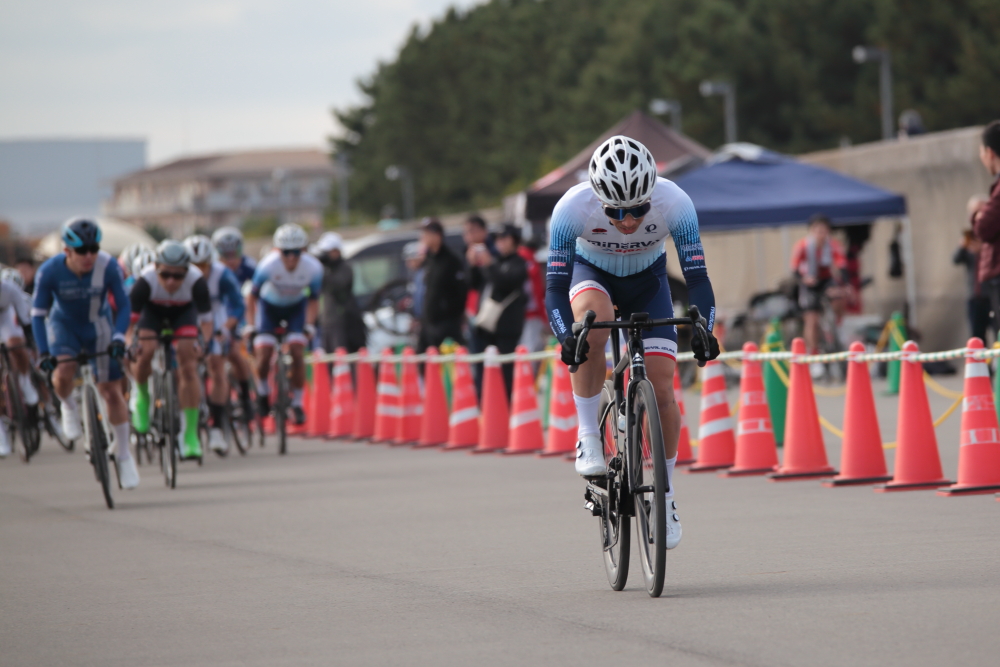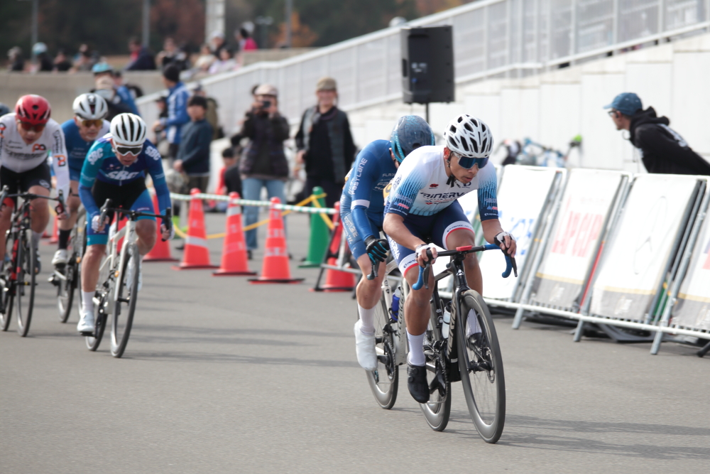 自分自身としてオフに入ってしまいましたが、落車なく積極的に前々で走ることを意識して出走します。チームランキングが1位で先頭に並ぶことができたので、せっかくならとファーストアタック。一時、チームメイトの原田選手、新藤選手【EQADS】などと集団から抜け出しますが、すぐに吸収されてしまいます。その後も、先頭付近で位置をキープするも、ジリジリと位置をさげてしまいDNFとなってしまいました。今シーズンからMiNERVA-asahiで走らせてもらい、多くの経験を積むことができました。来シーズンはこの経験を活かして、もっとチャレンジングな走りをしていきたいです。