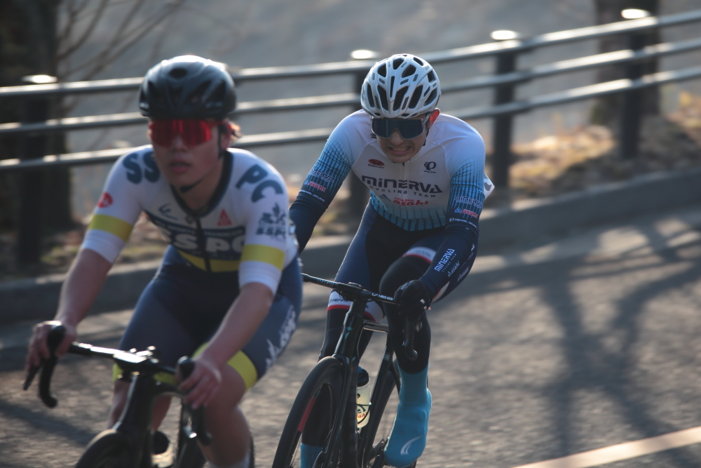 その翌周回に、井上選手【松山学院高等学校】と霜出選手【TRYCLE.ing】が集団から抜け出したが、これに気づけず。