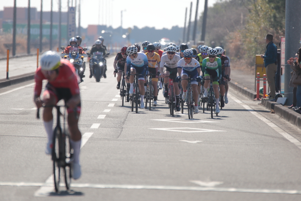 スタート直後からアタックが繰返し起こり、ハイペースな展開が続き、3周回目に入ってVC FUKUOKA DEVELOPMENT TEAMやチームGINRIN熊本を含む4人の逃げが形成されます。
