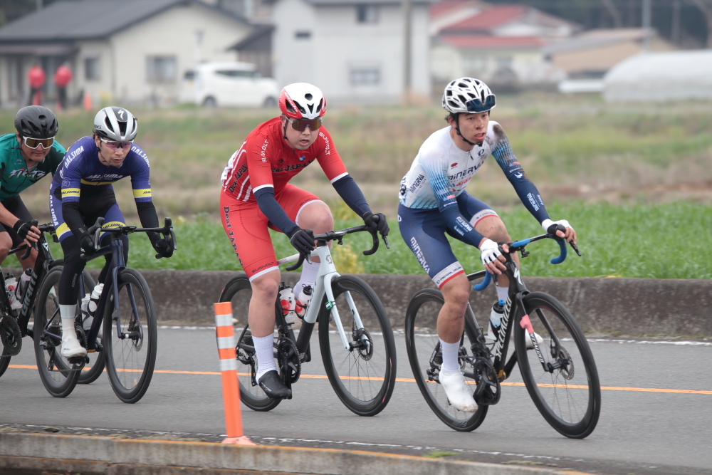 チームメイトの小林(毅)選手、布田選手と積極的に集団を牽引するも集団は全然回らず、逃げが決まってしまいました。