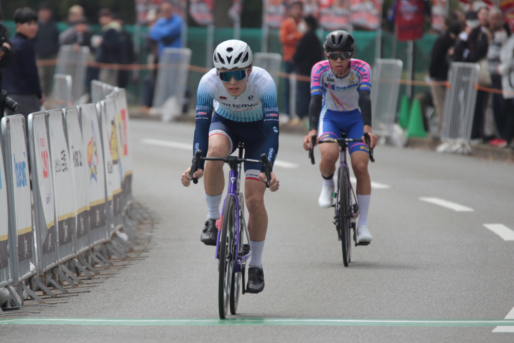 そのまま理想にかなり近い6番手の位置で最終コーナーを抜けることができましたが、スプリントでは初速があまり伸びず、後方にいた中川選手【SBC Vertex Racing Team】に捲られて、7位でゴールとなりました。