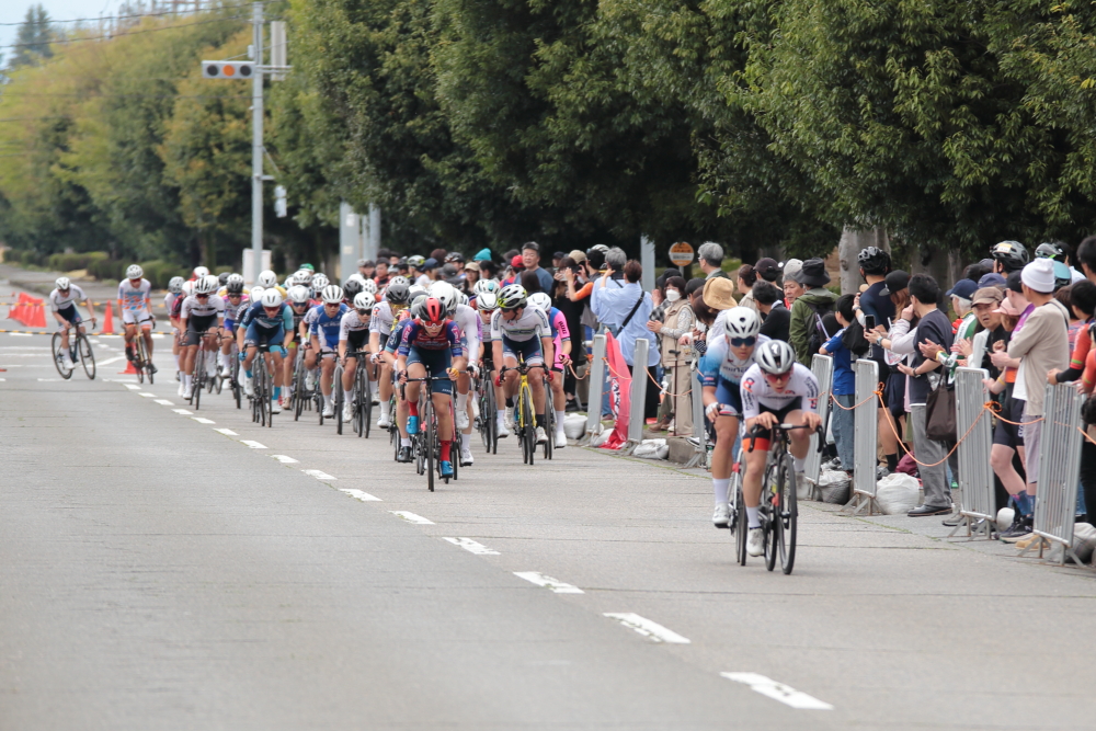 昨年開催時からコースが変更され、かなり流れるコースになったため、アタックが何度もかかりますが、決定的な逃げは決まらずに周回をこなしていきます。