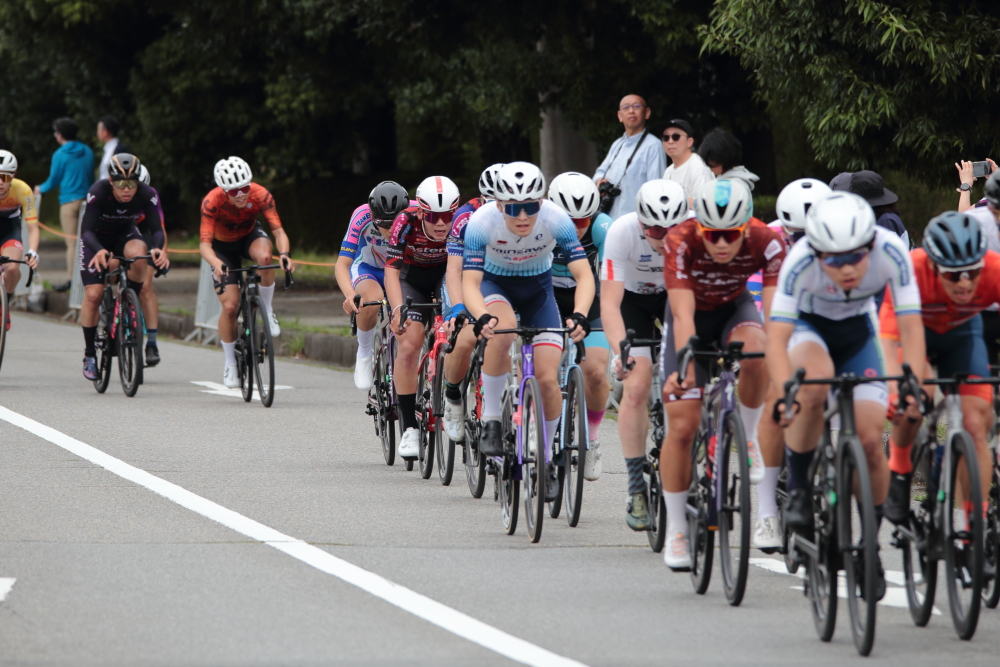 集団の後方からのスタートとなったが、リアルスタート後には先頭付近にあがることができ、高密度での走行は嫌だったので、1周回目から積極的に前で走り、チームメイトの山崎選手とS字コーナーのインターバルがかかるとこで前を牽き、集団にダメージを与えようとするもあまり上手くいかず。