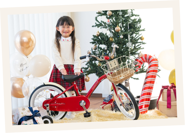 自転車はお子さまにとって、憧れの乗り物。「自分だけの自転車」を手に入れる喜びは特別な体験です。それに大きなプレゼントってそれだけでワクワク!クリスマスの朝の喜ぶ声が聞こえてきそうです。