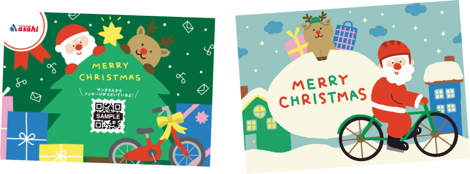 自転車にクリスマスカードを添えてプレゼント。二次元コードを読み取ると、クリスマスにサンタクロースからメッセージが届きます!