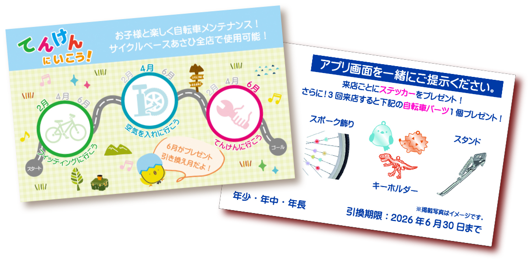 14型~18型の自転車をご購入&サイクルメイトにご加入頂いたお客様にスタンプカードを配布中!購入後も楽しい特典が続く♪