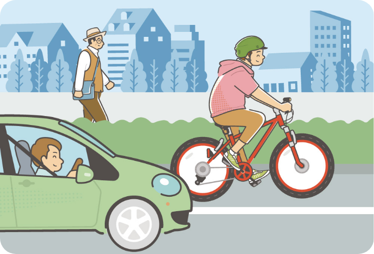 自転車を運転する場合は、年齢に関係なくすべての利用者が乗車用ヘルメットをかぶるように努めなければならなくなりました。頭部を守るためにも乗車用ヘルメットをかぶって自転車に乗りましょう。このほか、自転車を運転するときに、スマートフォンを使って通話したり、表示された画像を注視したりする「ながらスマホ」は、重大事故につながる危険な行為です。手に保持して通話したり、手に保持して画面を注視したりしてはいけません。