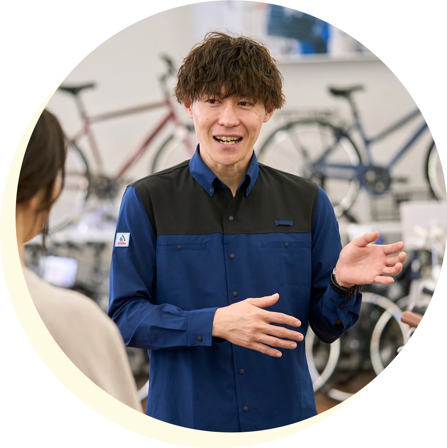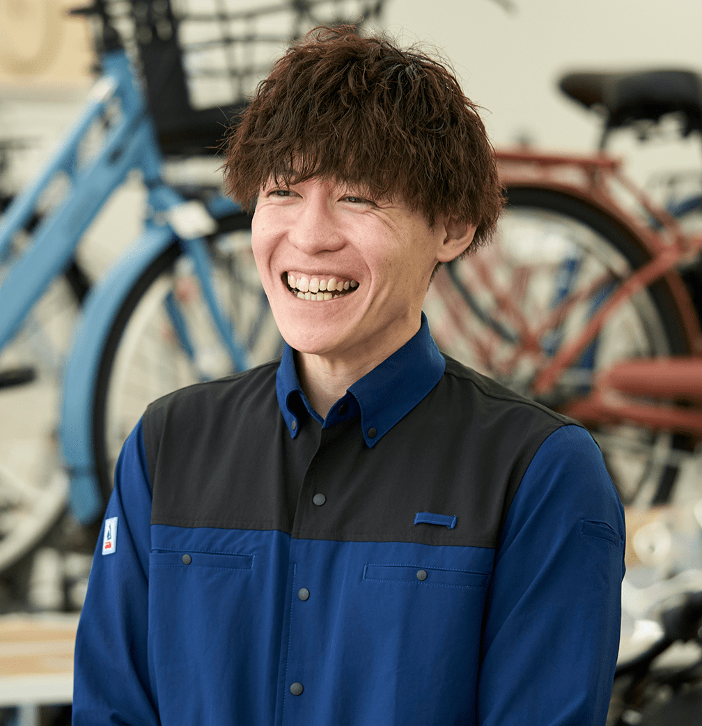近年、当社は研修に力を入れており、初年度は2〜3か月に一度の集合研修があったり、エリア別の研修も積極的に実施したりしています。自転車の整備や接客が初めての方でも、安心して働ける環境を整えています。