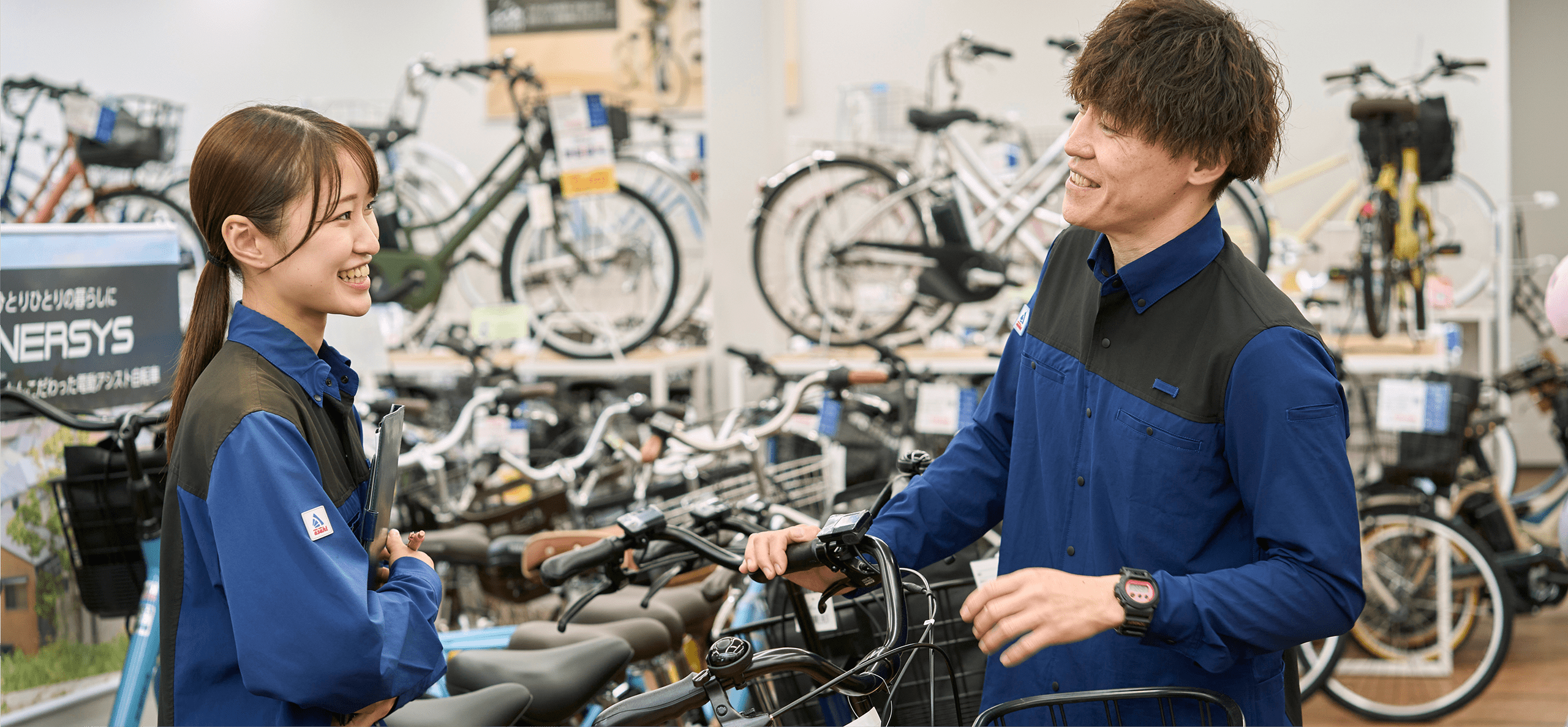 AIがどんどん活躍の場を広げている時代ですが、自転車の販売や修理は、私たち人の力なしには成り立ちません。お客様を笑顔にし、「ありがとう」と言っていただけるのは人間だからこそ。