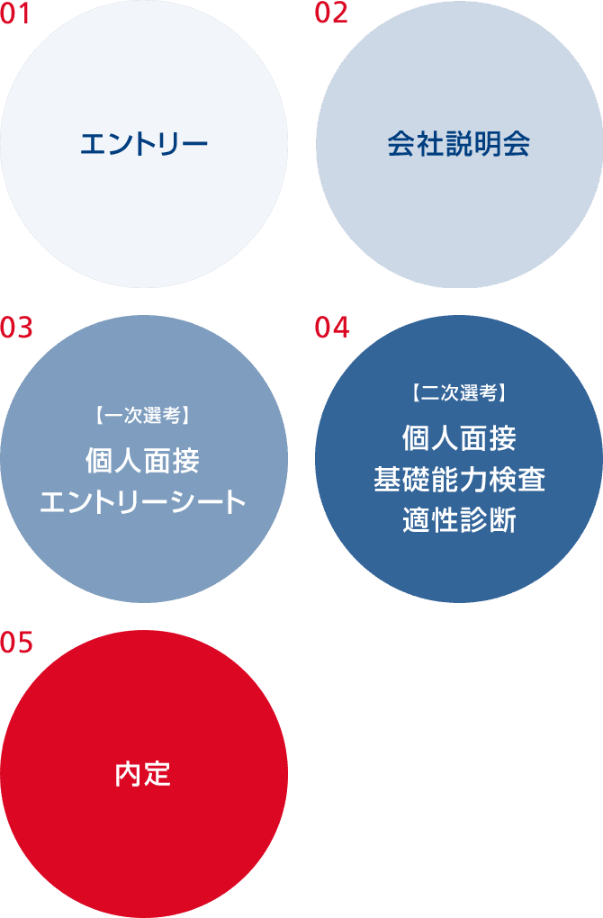 総合職と地域限定職を応募いただく際に選ぶことができます。地域限定職に関しましては転勤がありません。総合職の場合も希望をもとに初配属先を決定いたします。