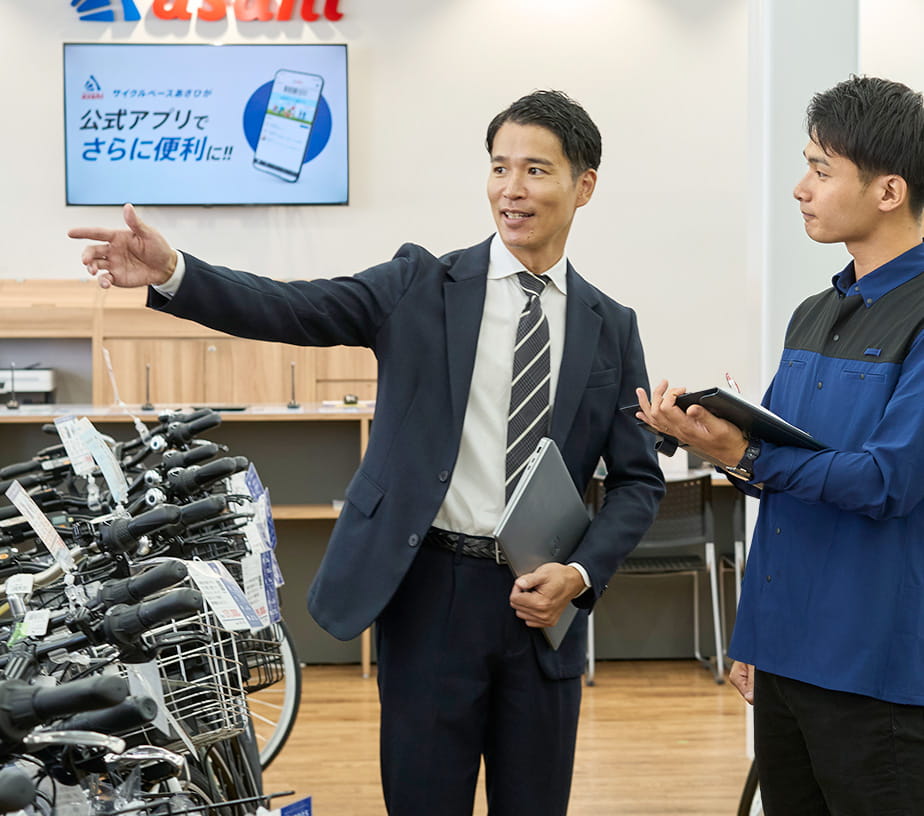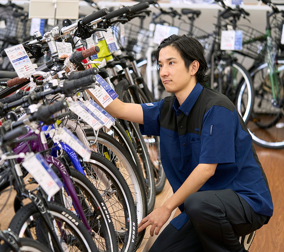 また、販売手続きや発注納品業務、修理、快適な売場づくりなど、お客様の自転車ライフをサポートするための知識や技術を習得していきます。