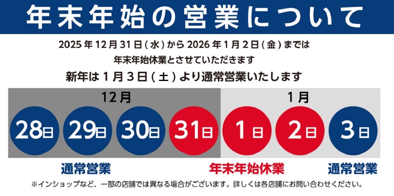 まことに勝手ながら、2025年末の最終営業日は12月30日(火)となります。
